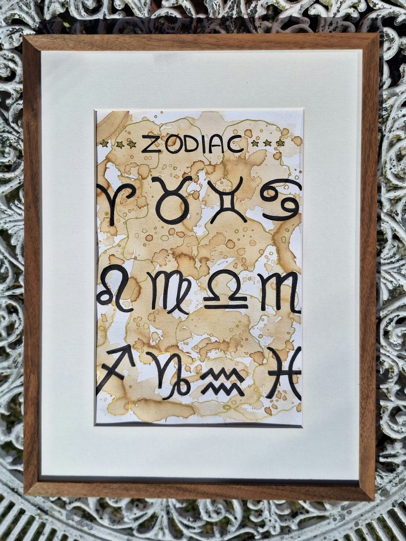 - Stjärntecken målade med kaffe, akvarell och mixed media på kvalitetspapper